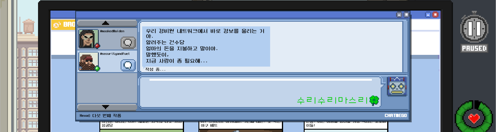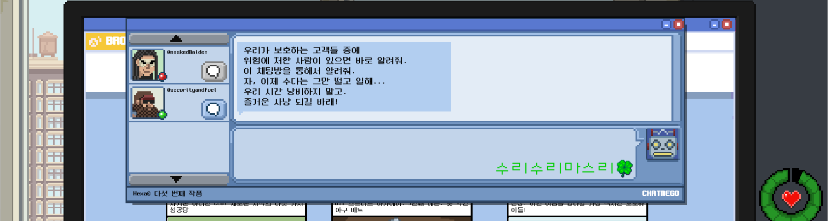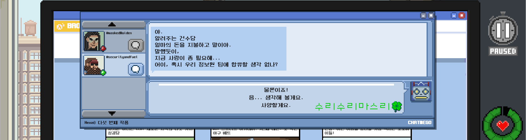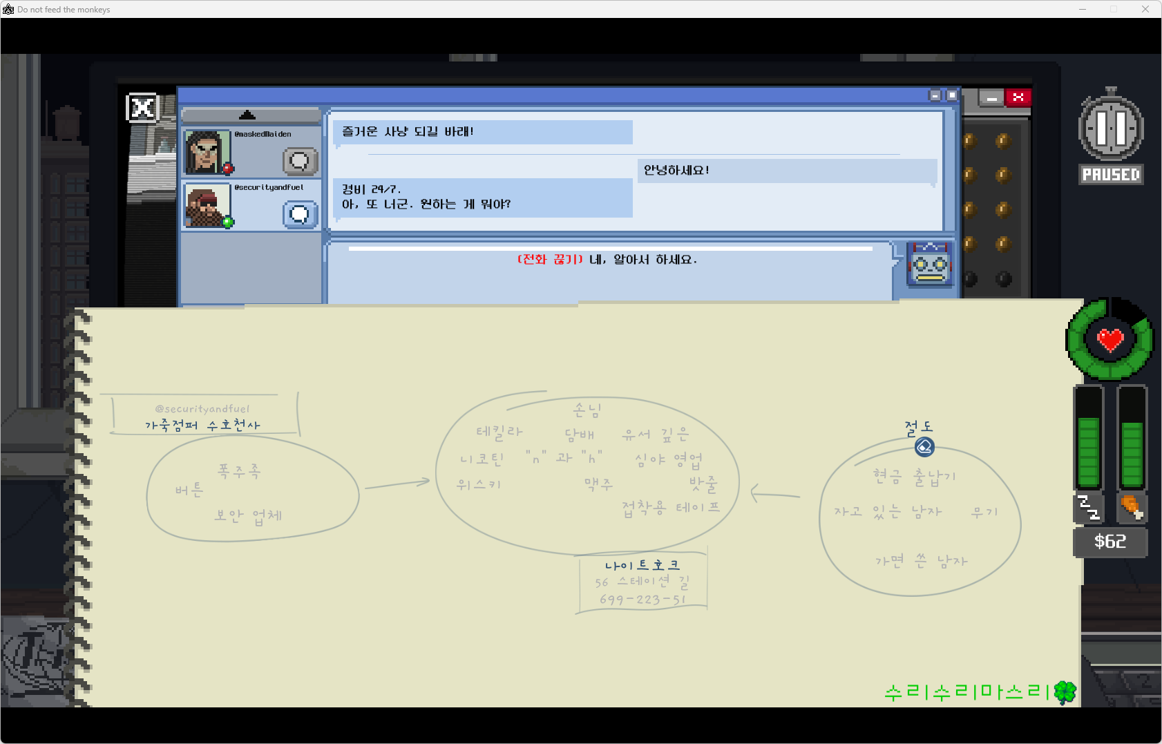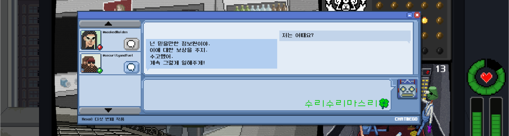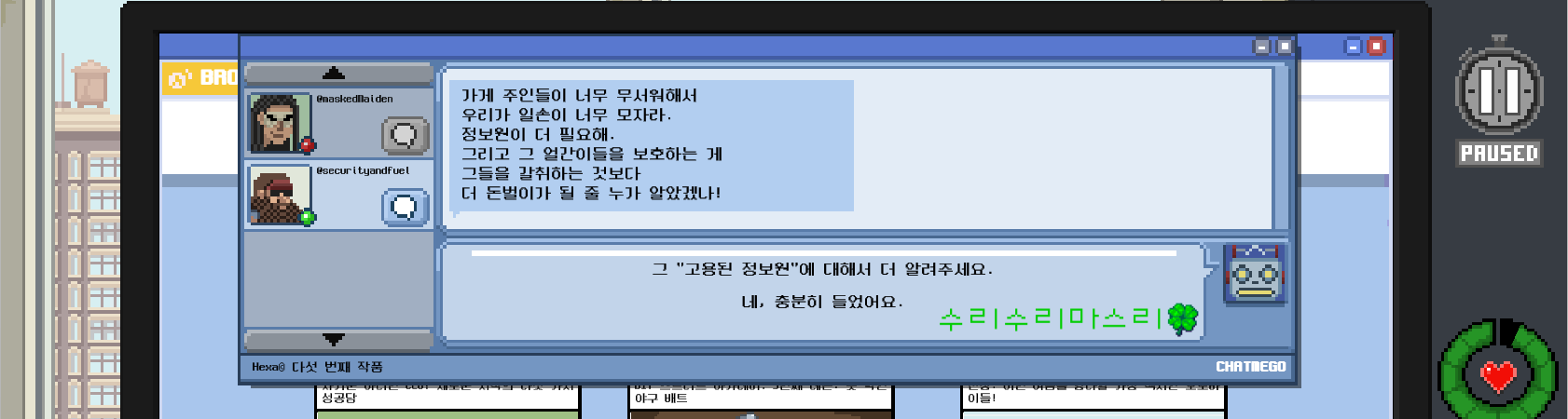 자 이제 공식적으로 정보원이 됐으니 그런 강도가 오면 얘네한테 알려주면 되겠다.