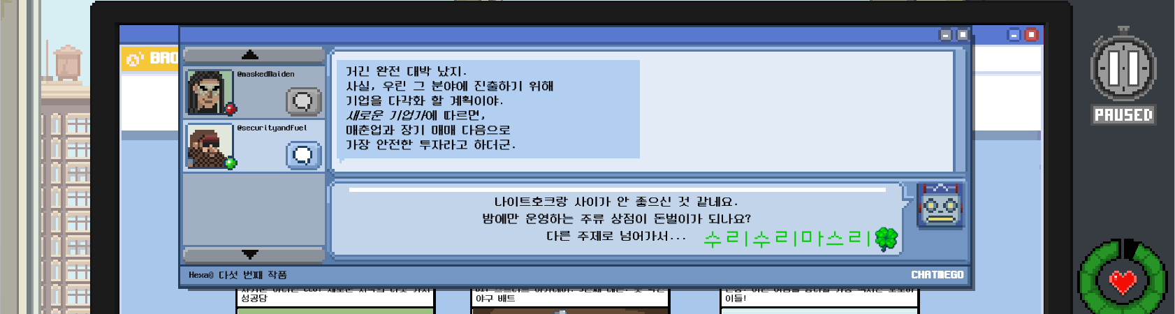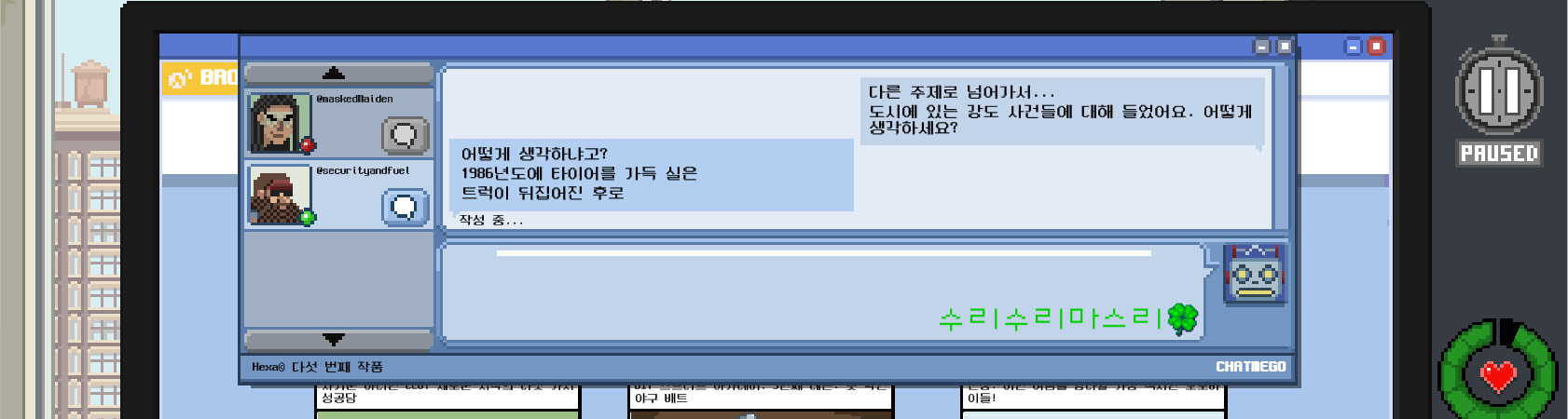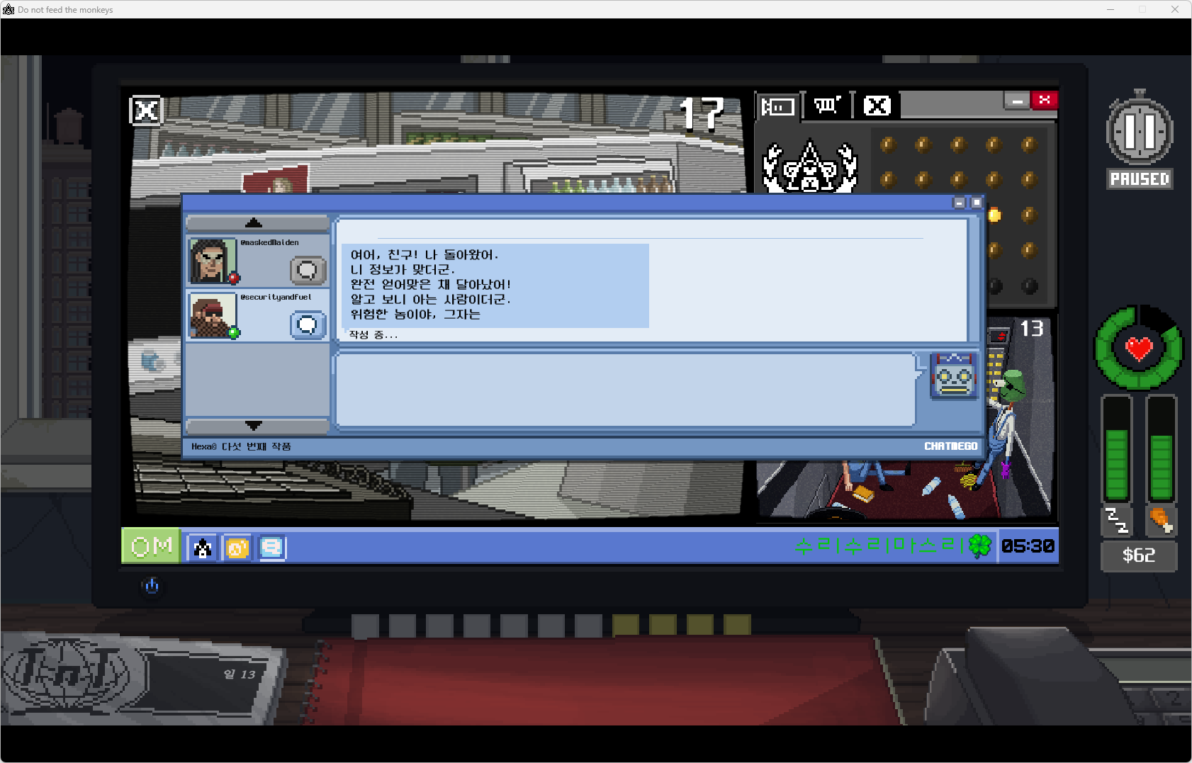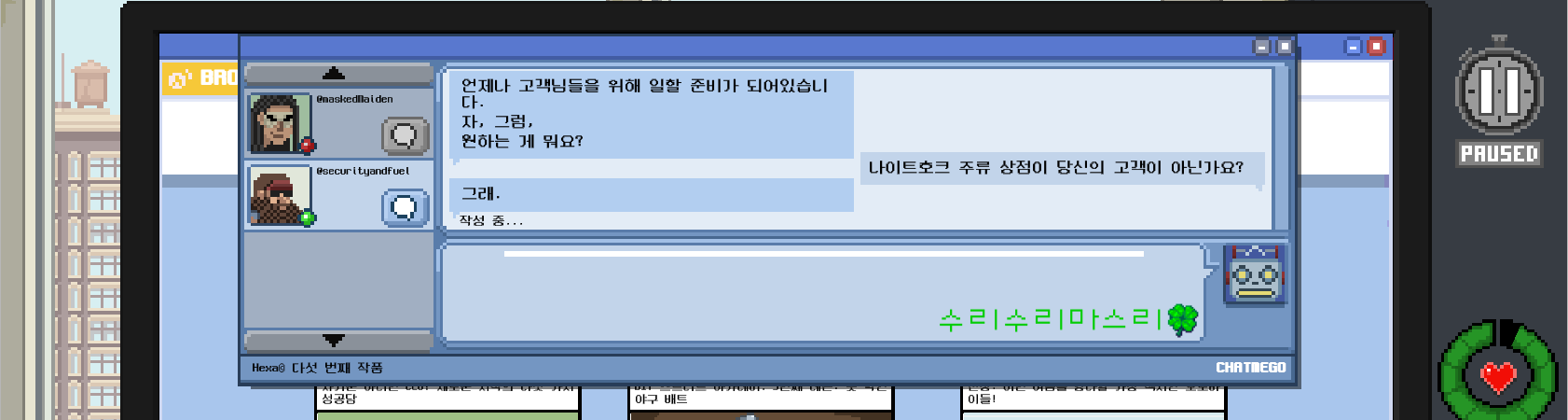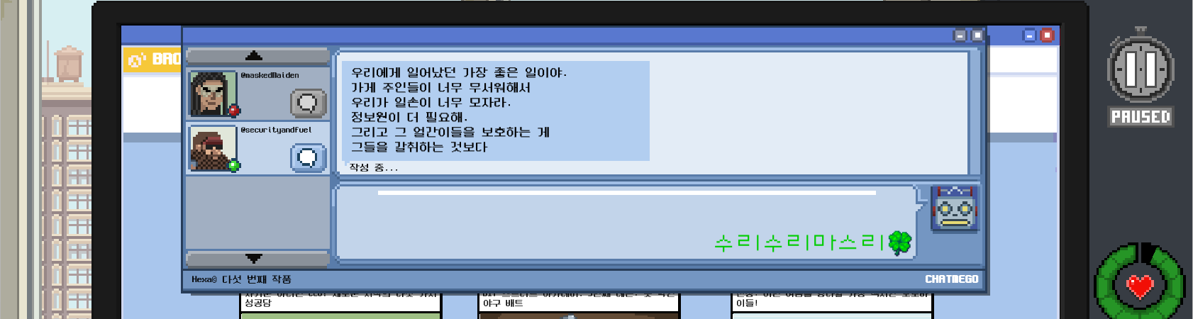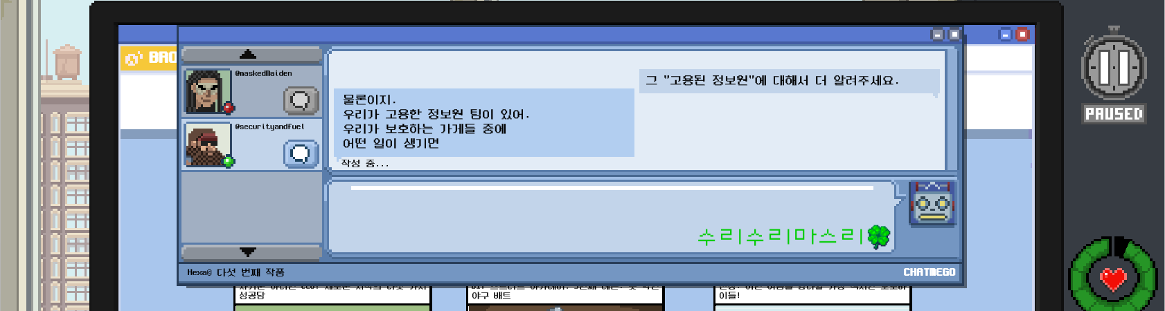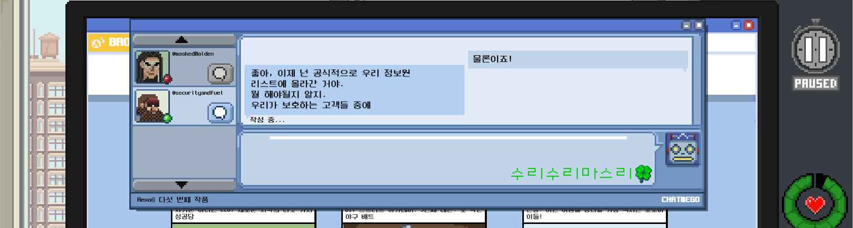 자 이제 공식적으로 정보원이 됐으니 그런 강도가 오면 얘네한테 알려주면 되겠다.