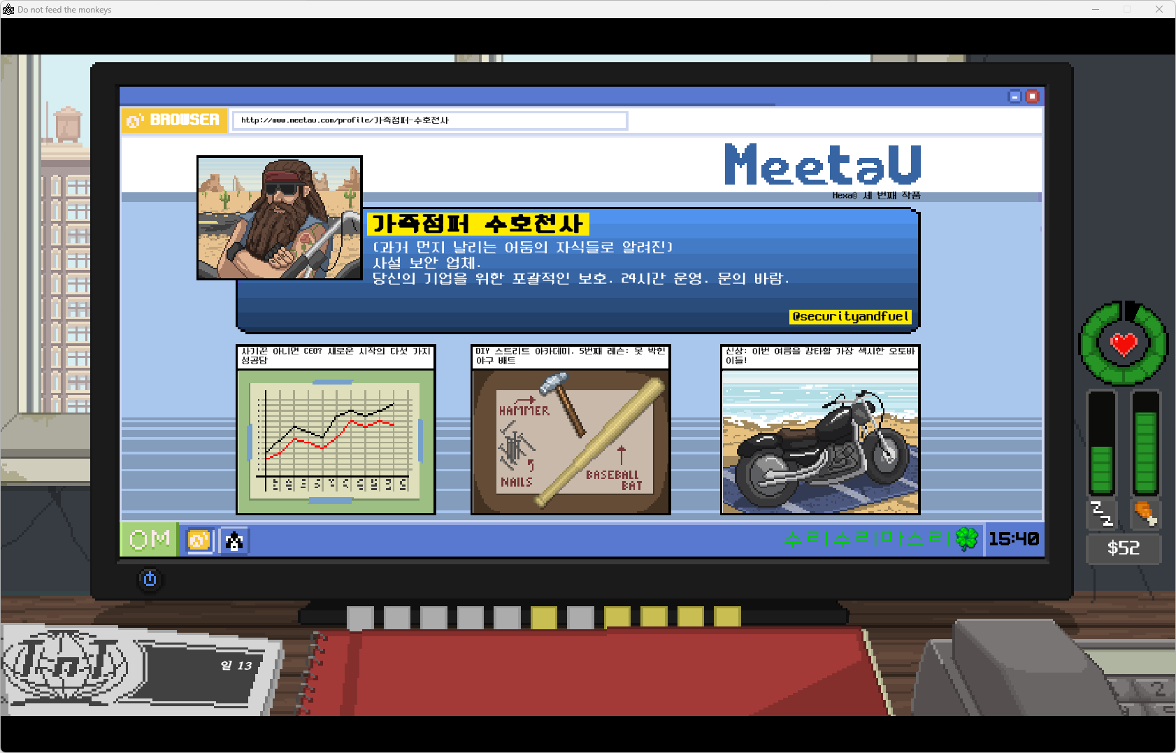 폭주족 + 보안 업체 검색 ▶ 가죽점퍼 수호천사 / @securityandfuel 키워드 획득