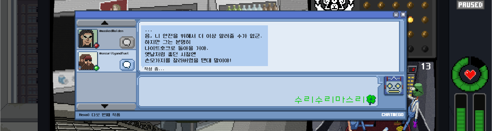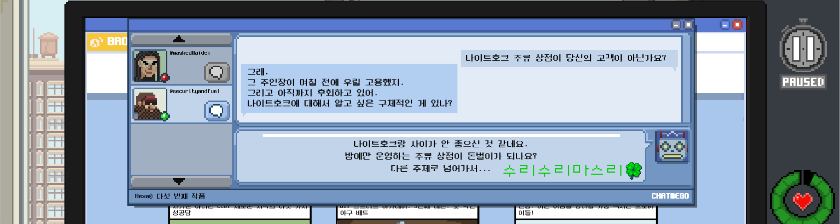 연락하면 이제 나이트호크의 보안업체가 가죽점퍼 수호천사라는 걸 알 수 있다.